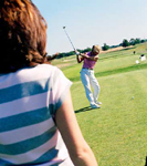 Helpful Hints for Golfers If you are carrying your clubs it is best to use a light weight bag with a double crossed shoulder strap to disperse the weight of the bag and its contents. If you are using a push/pull cart it is best to push the cart in front of your rather than twist your body to pull the cart behind you. As with any activity, it is important to stretch following your golf game or trip to the range. A stretching routine should specifically address the mid to low back, buttocks , shoulders and wrists. This will prevent stiffness, minimize injury and prepare the muscles for the next trip to play golf. Don’t forget to include stretching the calf muscles as they are used going up the rolling hills of a golf course. It is important to consider cross-training. Working on other aspects